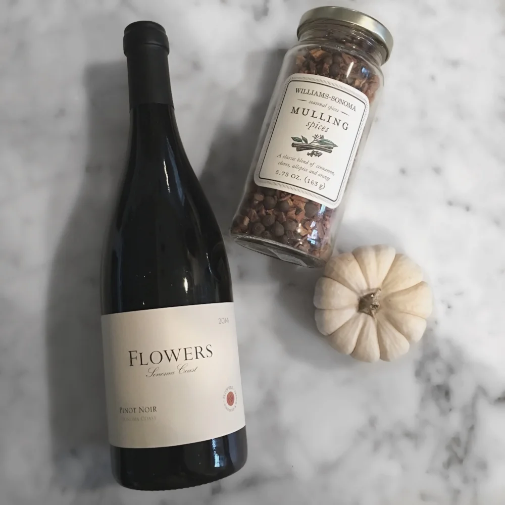 Some recent fall essentials: mulling spices, our favorite Pinot, and a pretty petite pumpkin.