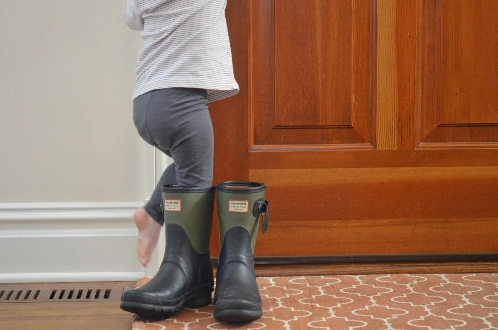 Yesterday was one such day. But thankfully, MM and her four-legged friend discovered her Auntie P's pair of forgotten boots. Just one glimpse and she was instantly obsessed. As any girl would be. They provided minutes of entertainment as she climbed in and out of them- all fun and games until she tried to walk in them. And Henry, as always, was along for the ride.