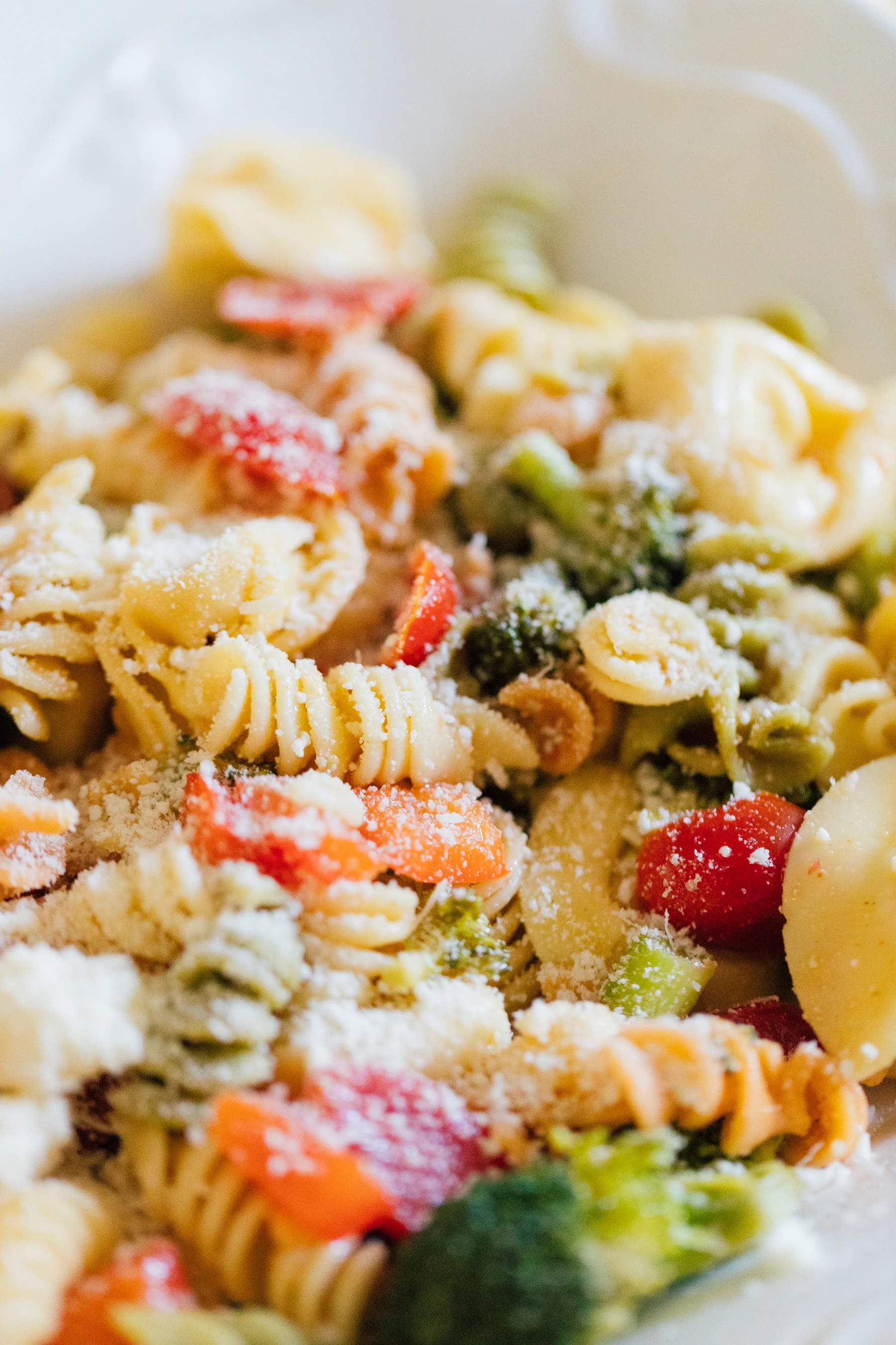 For me, there are a few- Mom’s famous chocolate chip cookies, Deer Valley turkey chili, and this colorful take on a summertime favorite: Pasta Salad.