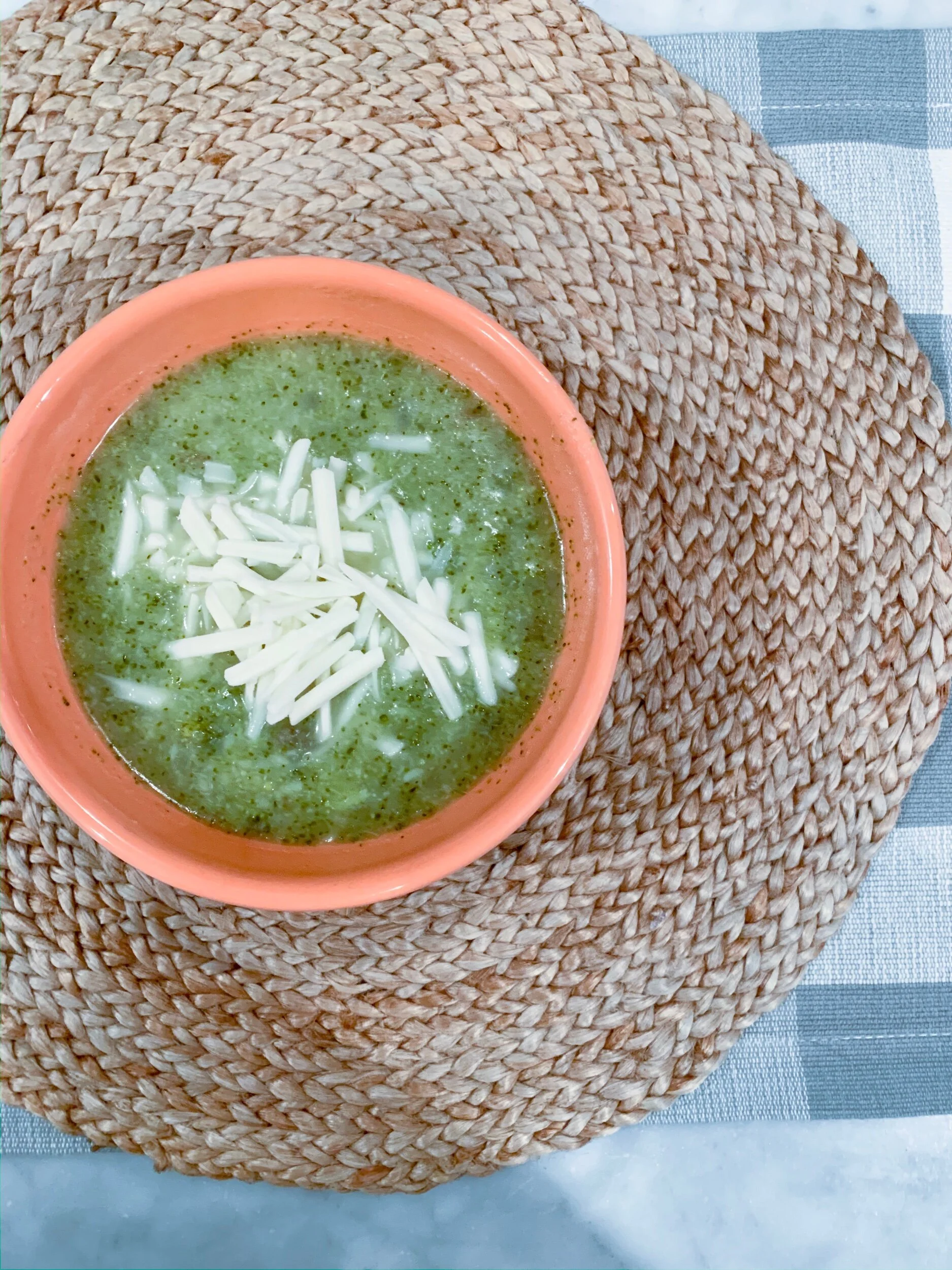 I found this super simple, vegan recipe on Pinterest and whipped it up with her after school. And it was delicious. I doubled the amount of broccoli and chicken stock, mainly because I had no idea what 1.5 lbs of broccoli looked like and I totally over-bought. We had some Violife shredded mozzarella on hand, and it added the perfect amount of creaminess and flavor.