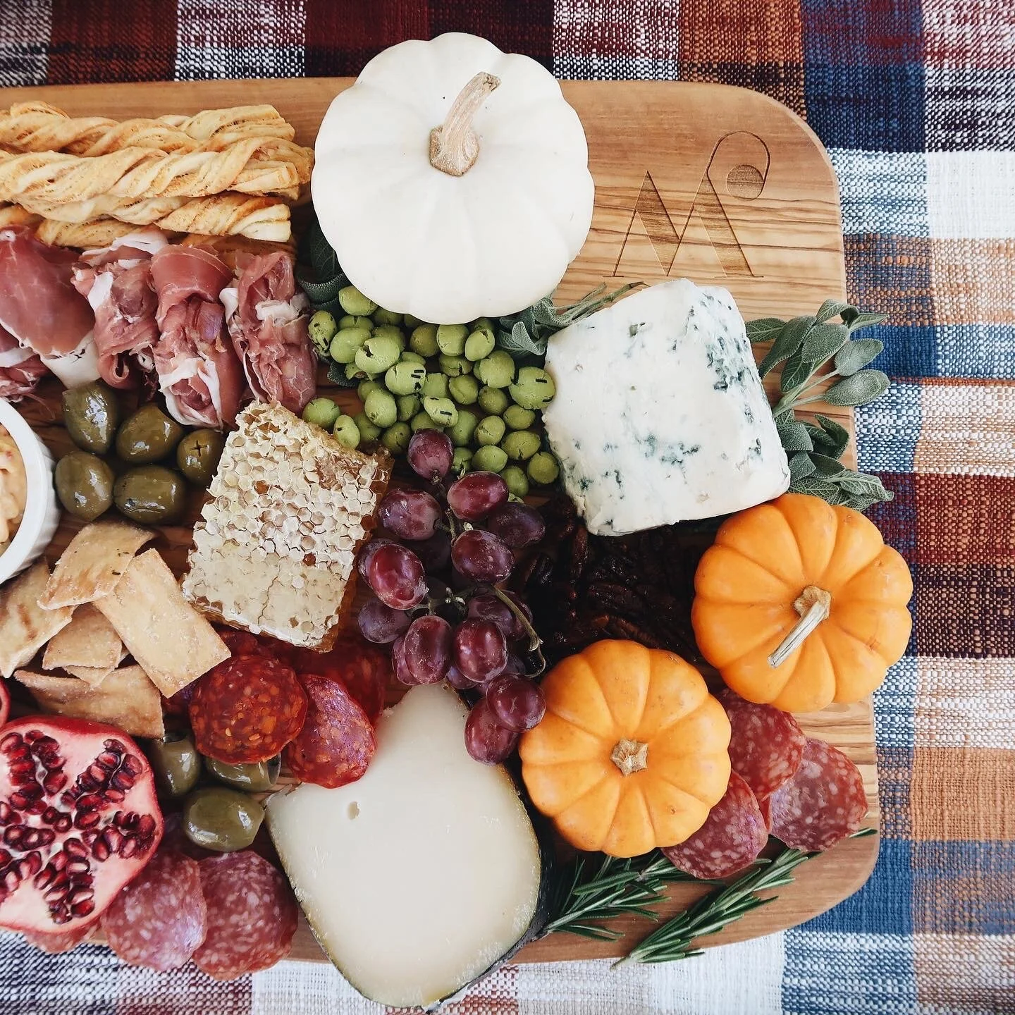 So this weekend my sister @readyjetsetgo and I teamed up with Wren Home to flex our cheeseboard skills and dress up one of their beautiful olive slab monogrammed boards {here}.